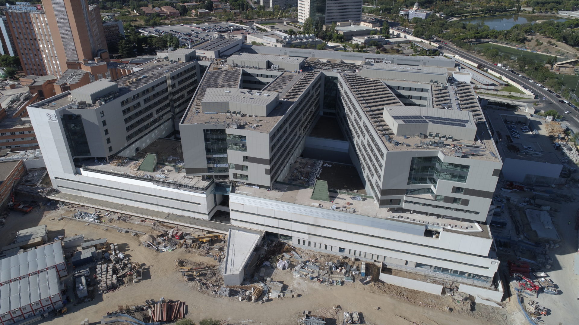 Máquinas de aerotermia y placas fotovoltaicas en la cubierta del Colegio Brains.