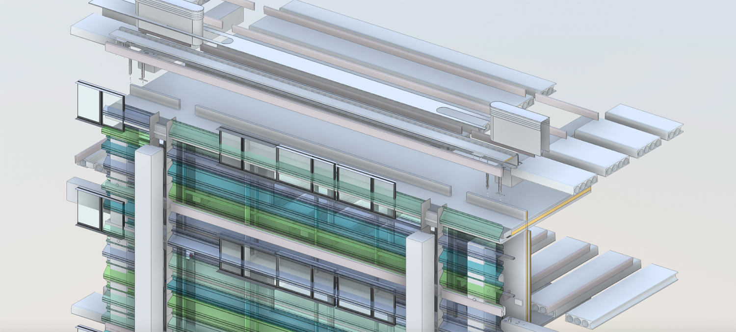 Rénder del proyecto Delta Business Center, Viladecans, Barcelona, “Concebimos cada edificio como un volumen suspendido mediante finos pilotes, por debajo del cual fluye libremente el paisaje y su topografía.”