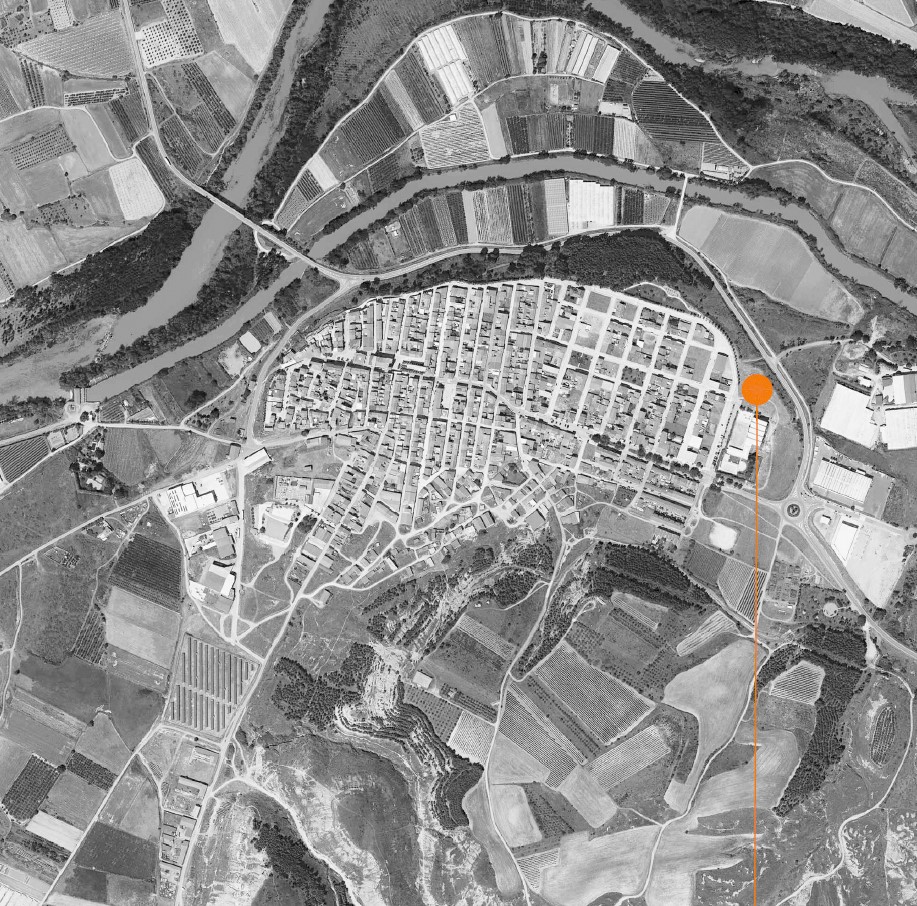 La parcela, propiedad del Ayuntamiento, se sitúa en una zona alta del pueblo, al norte de la trama urbana, junto a una zona deportiva.