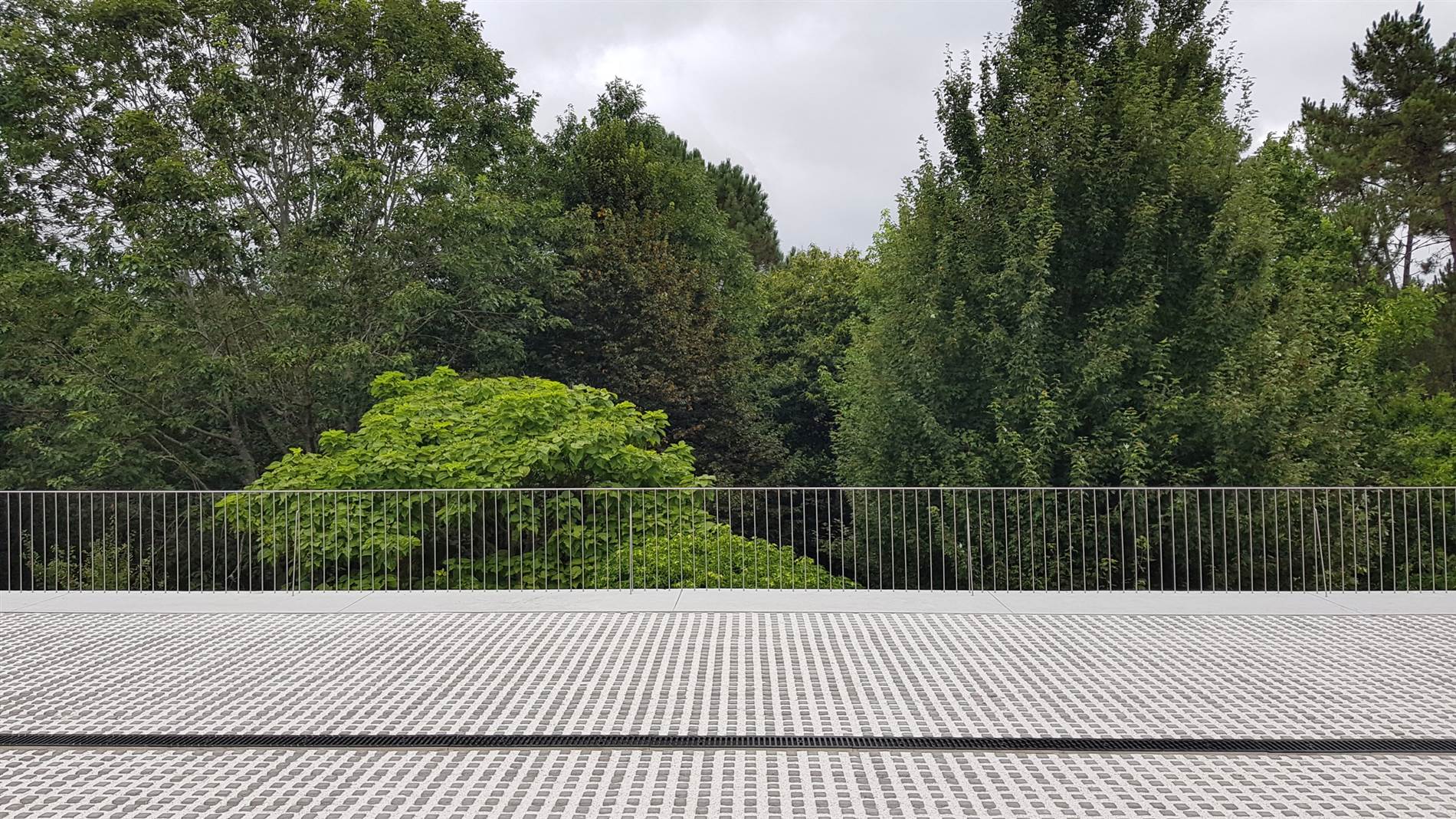 En el acceso principal, el edificio anexo del salón de actos se ha escondido tras un cilindro de chapa metálica que la convierte en un elemento referencial del acceso y además ofrece un nuevo lugar, importante en la relación entre el interior y el exterior. La piel de este cilindro es a base de chapas de deployé de aluminio, en las que las juntas entre las mismas tienen tanta importancia como la propia chapa.