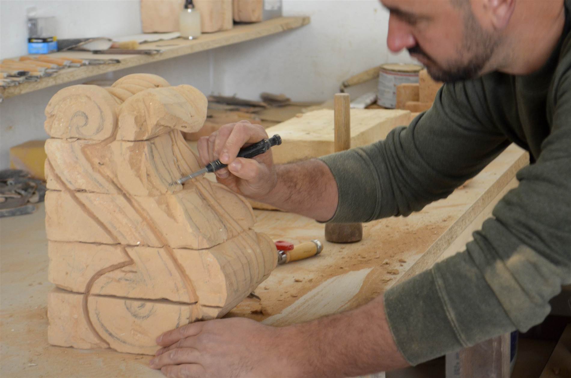 Sebastián Pérez Gómez, maestro tallador de ladrillo. Fotografía: Pablo Sevilla-Guillermo Gil.