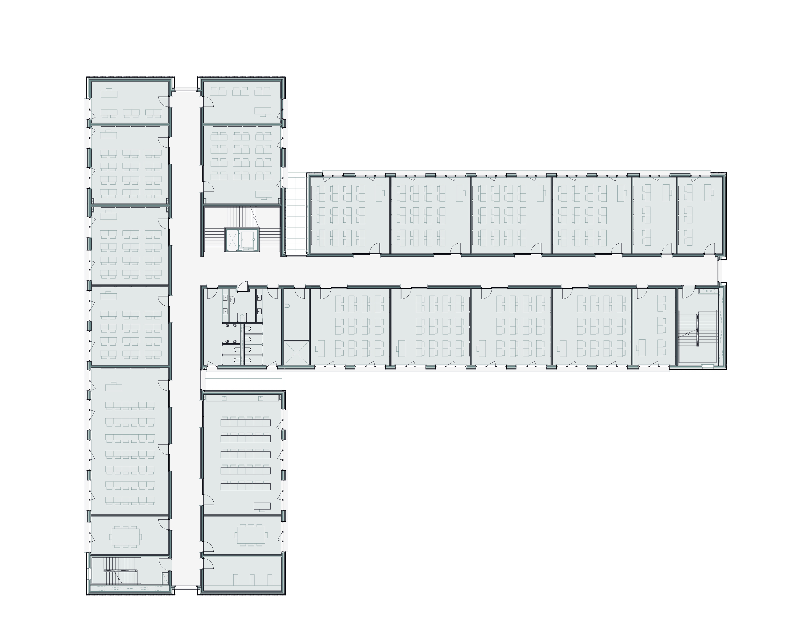 Siguiendo los estándares Passivhaus, el proyecto combina aislamiento térmico de altas prestaciones, control de puentes térmicos, hermeticidad al aire y ventilación mecánica con recuperación de calor, garantizando un confort constante para el alumnado y el personal docente.