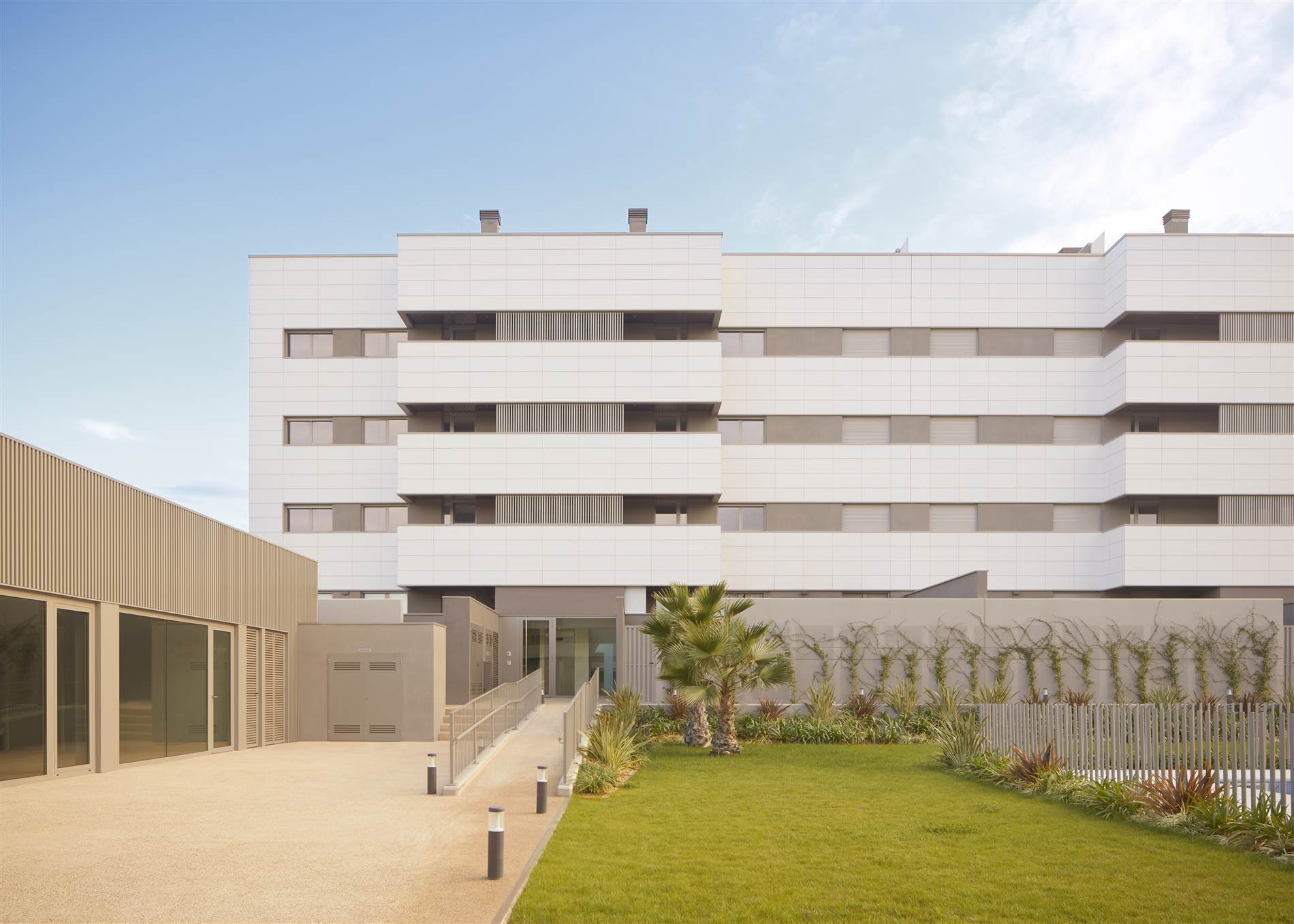 La importante envolvente aislante se acaba hacia el exterior con una fachada ventilada cerámica que aporta un comportamiento más adecuado a la climatología de la zona, en la que predominan inviernos húmedos de frío moderado, pero también temporadas con una elevada radiación solar.