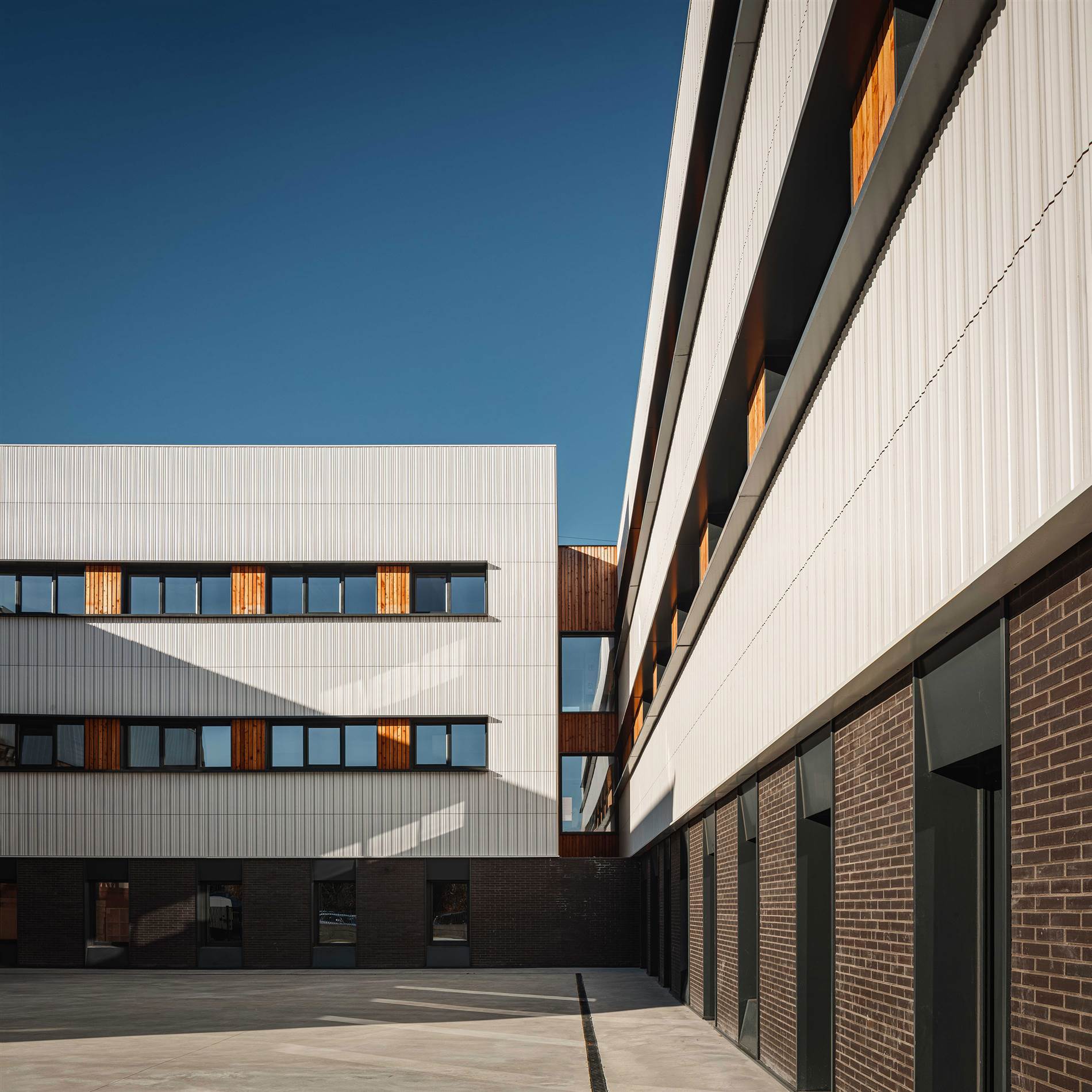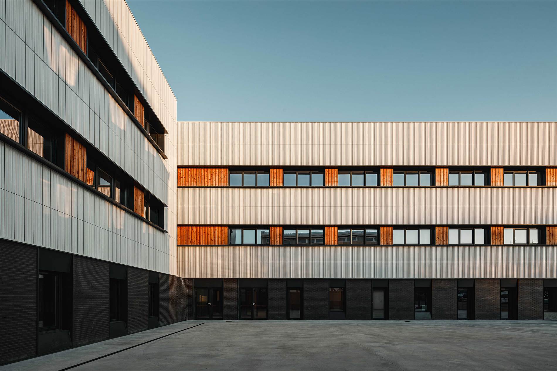 BAT Architecture proyecta un edificio escolar para el que plantea una construcción Passivhaus con estructura de madera CLT que protege y regula térmicamente mediante una fachada ventilada cerámica de Faveker, para la que diseñó específicamente la pieza extrusionada.