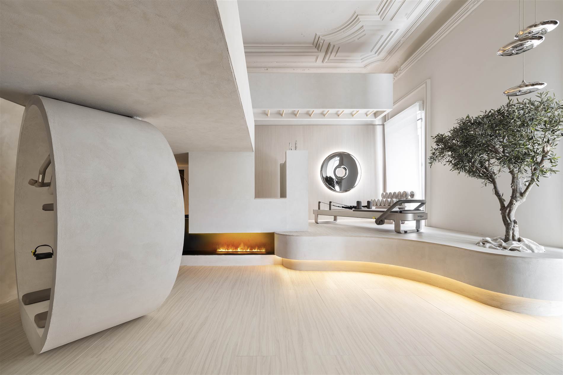 El estudio Ruiz Velázquez Architecture & Design diseña el espacio para Technogym que definen como un paisaje interior basado en volúmenes inspirados en la arenisca.