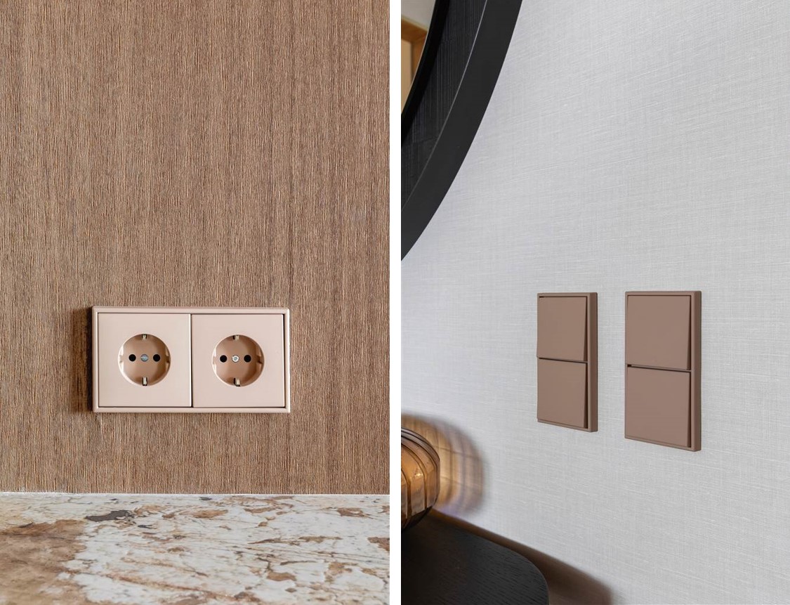 En este espacio se han instalado mecanismos LS 990 en el color 32141 (ombre naturelle moyenne) de Les Couleurs® Le Corbusier®. Todos los tonos armonizan entre sí ofreciendo una inmensa variedad de combinaciones.