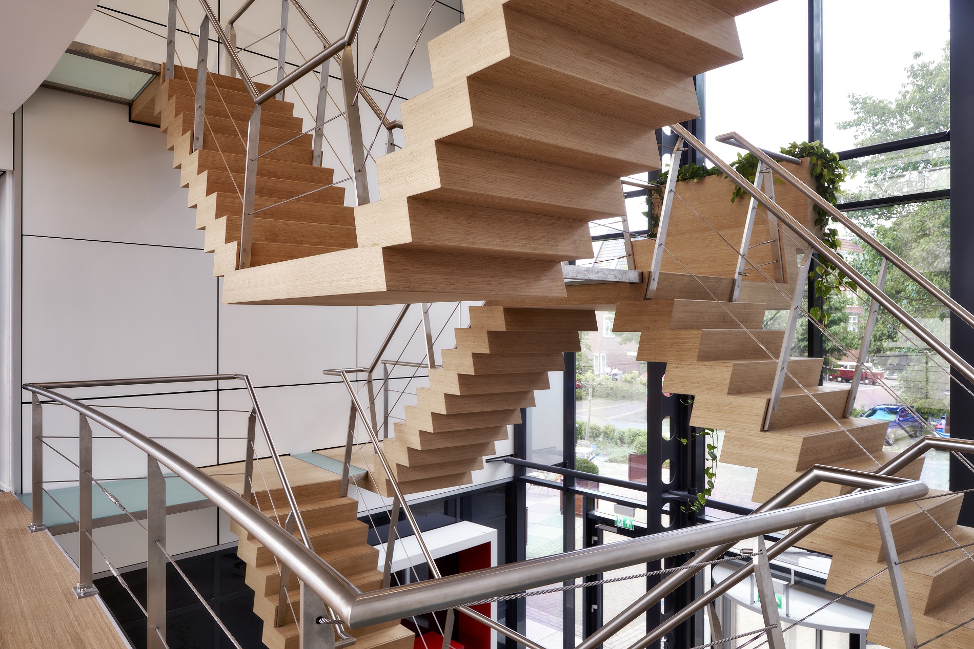 EeStairs se encargó del replanteo y ejecución de la misma, cuidando con gran atención cada uno de los detalles, que se aprecian de una forma especial en el revestimiento del peto exterior. En este un estucado de mármol y yeso pulido remiten a las texturas de los palacios romanos. También se encargó de la realización de los elementos de iluminación con perfiles de latón y la balaustrada de la primera planta en vidrio y latón.