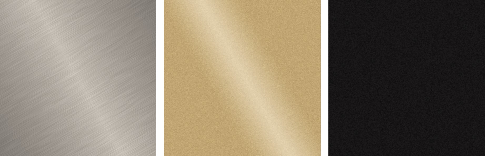 Las manillas están disponibles en cuatro acabados estándar: Níquel pulido, Latón o bronce satinado, Negro texturizado mate, y versión en bruto, preparada para recubrimientos personalizados.