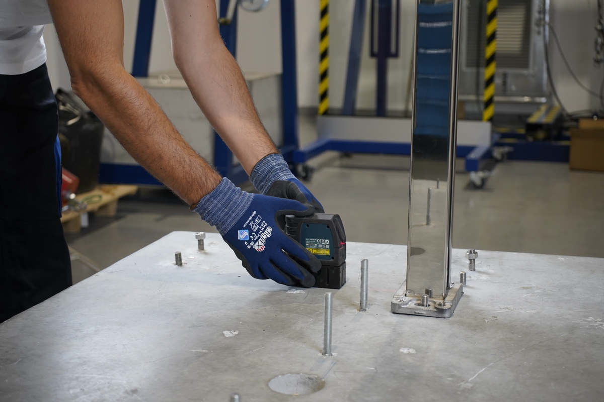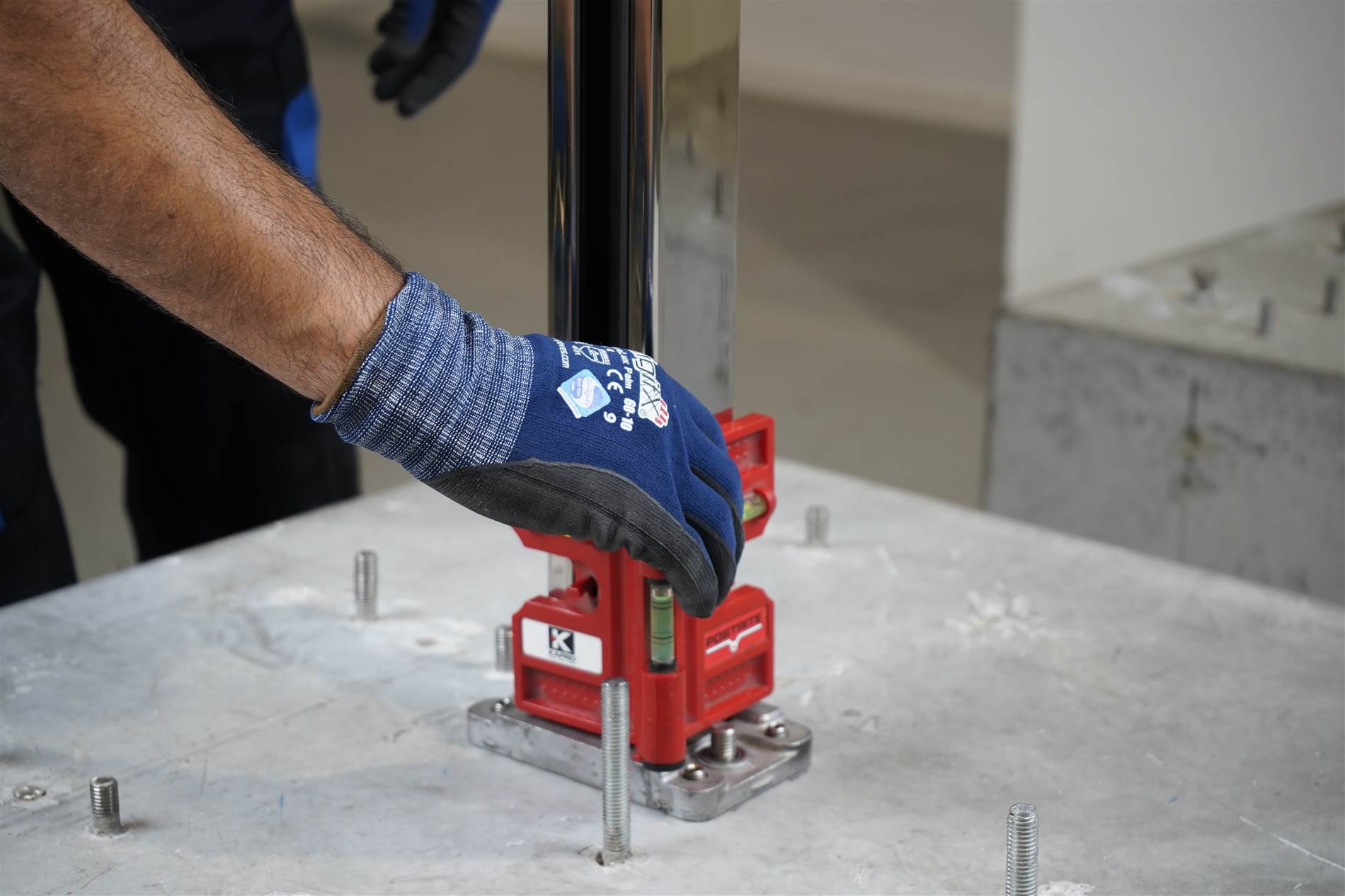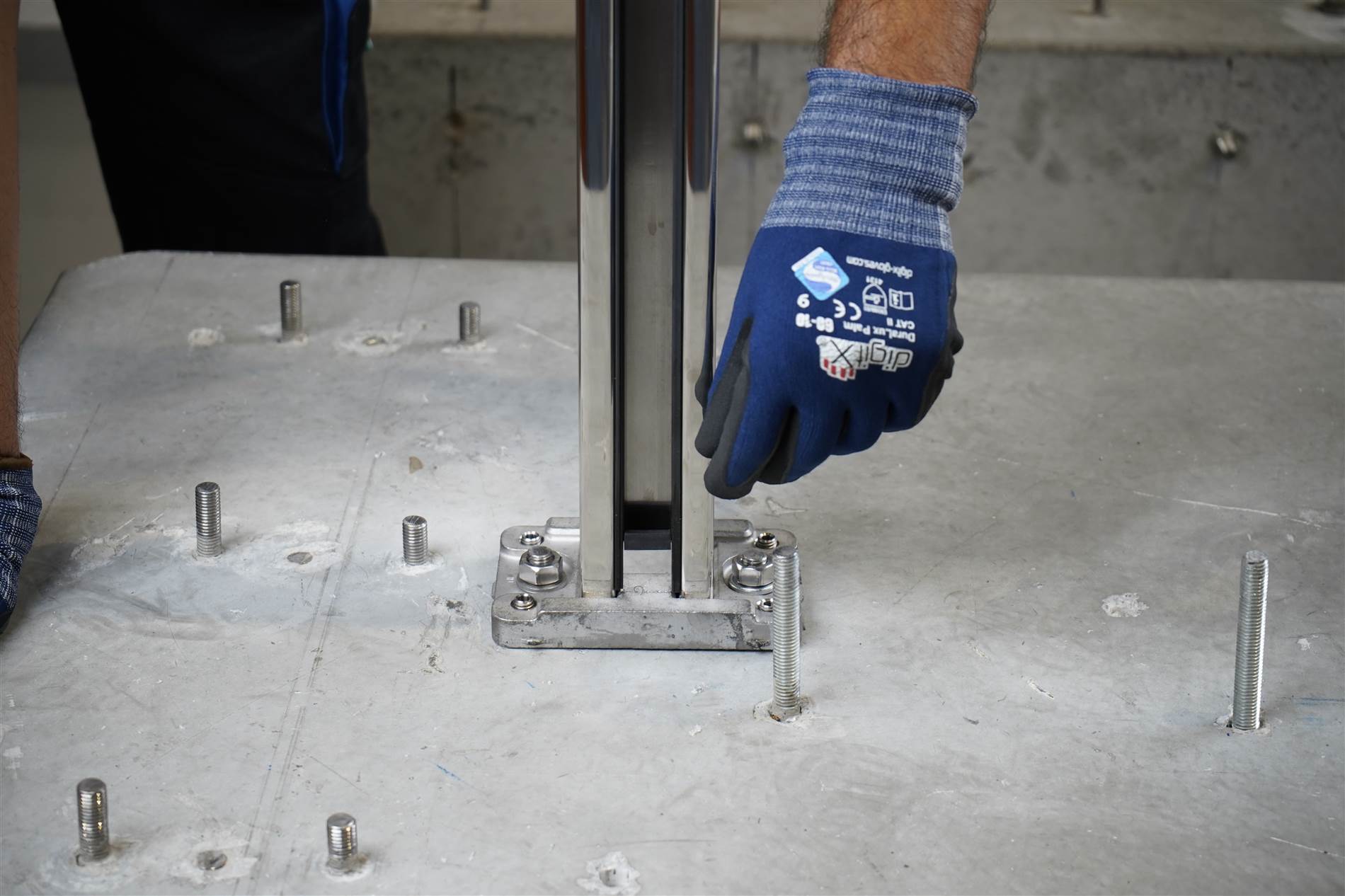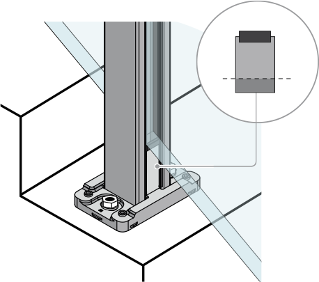 Facilita la verticalidad del poste y, en consecuencia, del vidrio; absorbiendo irregularidades de hasta 5mm en el forjado.