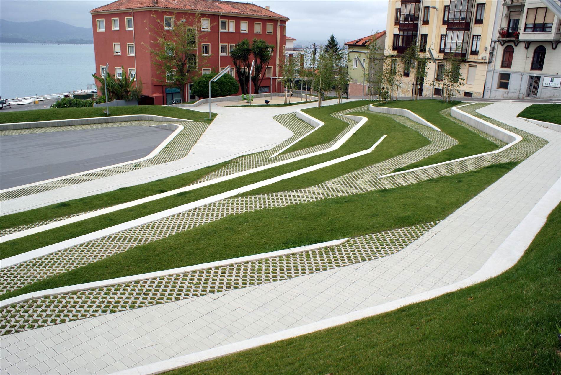 ecoDraining cumple con su función arquitectónica con una variada gama de formatos y colores que pueden utilizarse en espacios públicos y en alcorques. Asimismo, cumple con su función drenante garantizando la no colmatación y la descontaminación de las aguas. El diseño de estos pavimentos está concebido para su colocación sobre base flexible sobre un lecho de gravillín (canto rodado, preferiblemente), facilitando su posterior desmonte y reutilización, y prolongando de esta manera la vida útil del producto. En función de las características del terreno y del uso de la pavimentación existen diferentes posibilidades de colocación, tanto sobre base de zahorra permeable o sobre solera de hormigón (permeable o impermeable, con su debida recogida de agua).