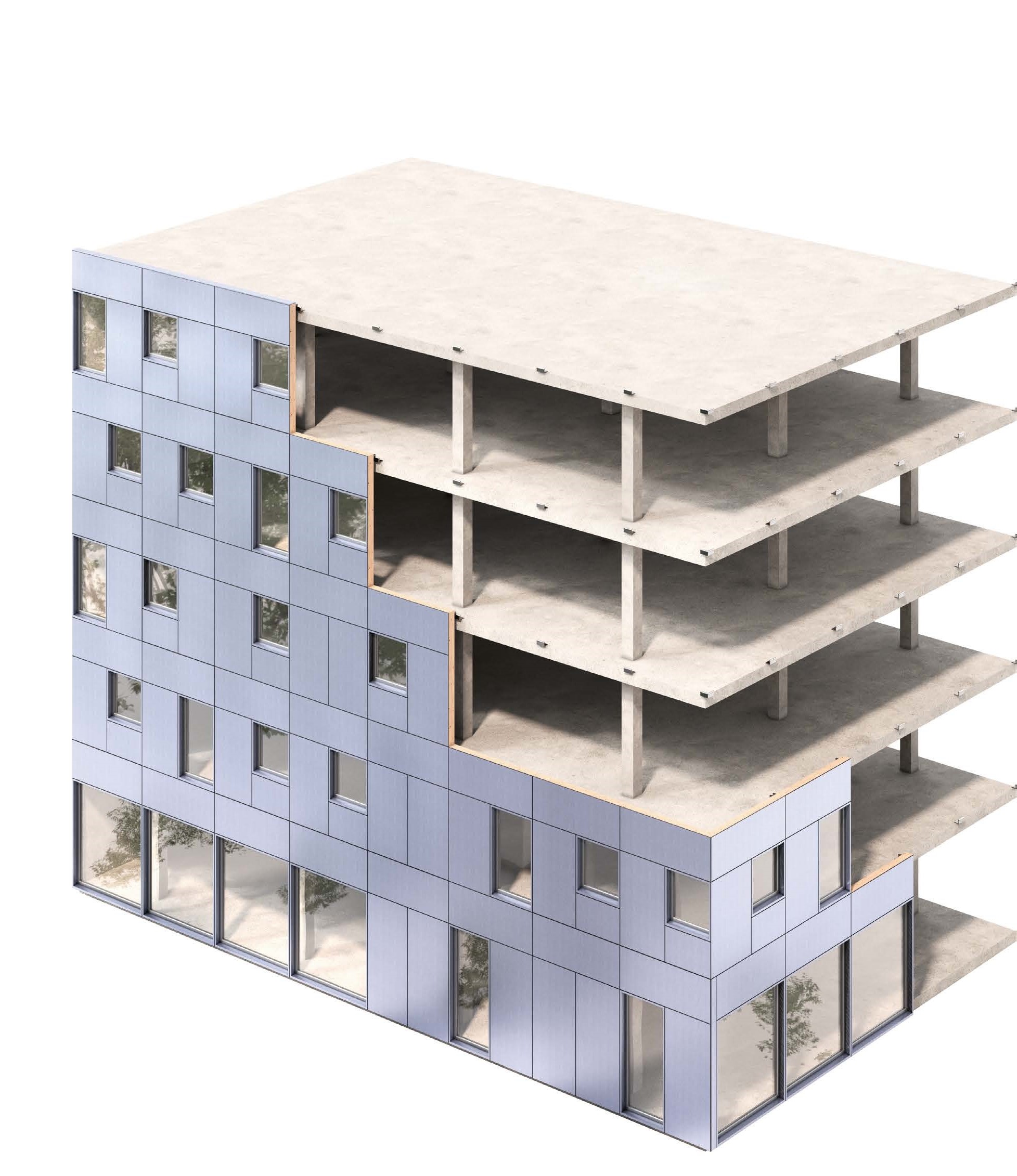 El sistema se plantea en la línea de una arquitectura ligera, de construcción en seco y de máxima eficiencia energética.