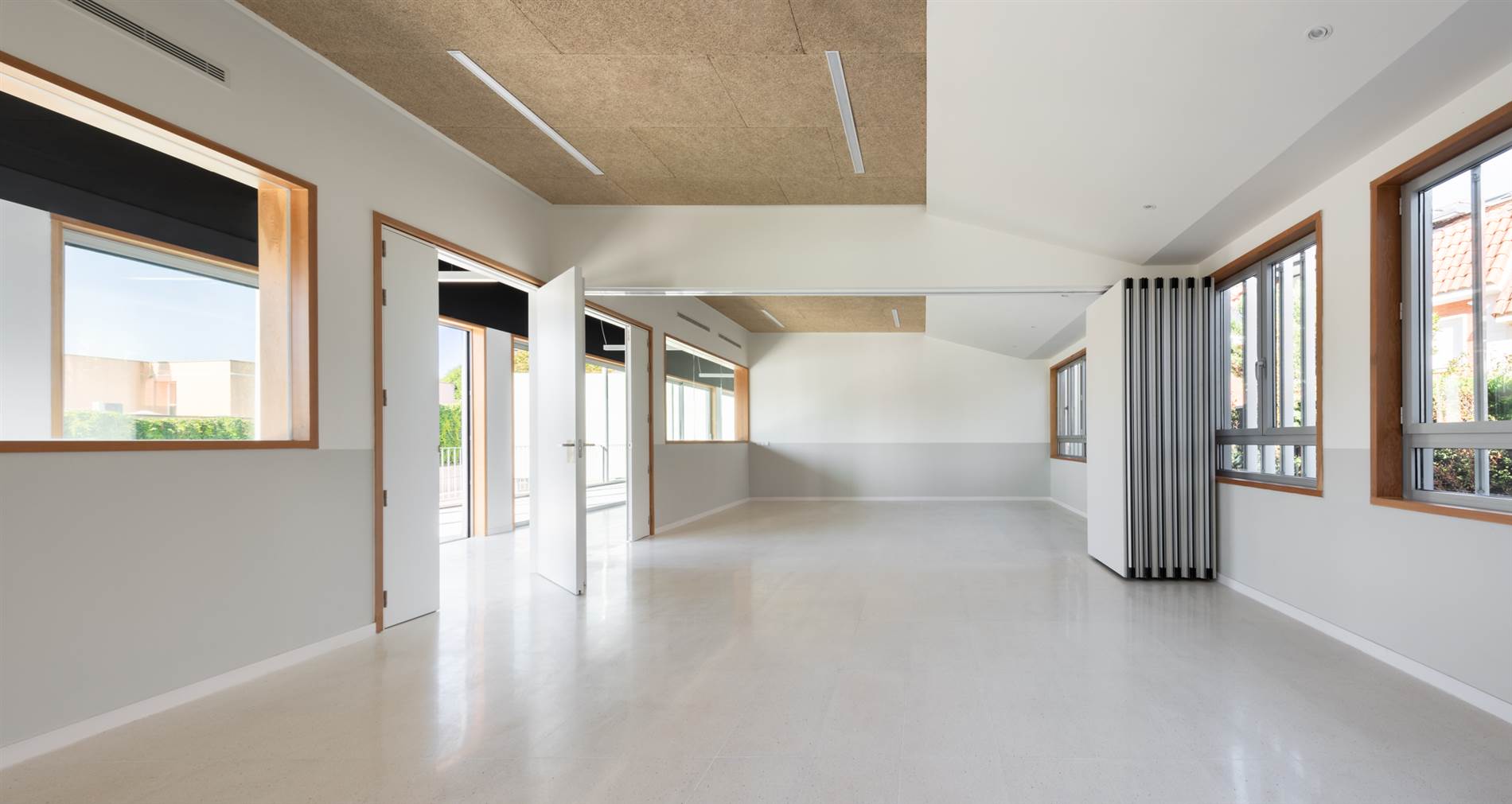 AJ: dimos mucha importancia a los espacios intermedios y, especialmente, a la transparencia de las aulas hacia el pasillo y hacia el exterior. Pensábamos que tal vez prefirieran las aulas más cerradas para que no se despisten los niños, pero lo hablamos con los profesores y nos dijeron que cuanto más transparentes las aulas, mejor. La relación del espacio, cómo se percibe el exterior desde la propia aula, me parece un acierto.
