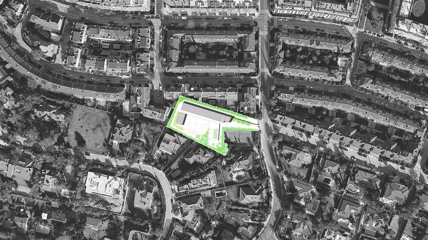 Vista aérea con el estado de la parcela antes del comIenzo de las obras.