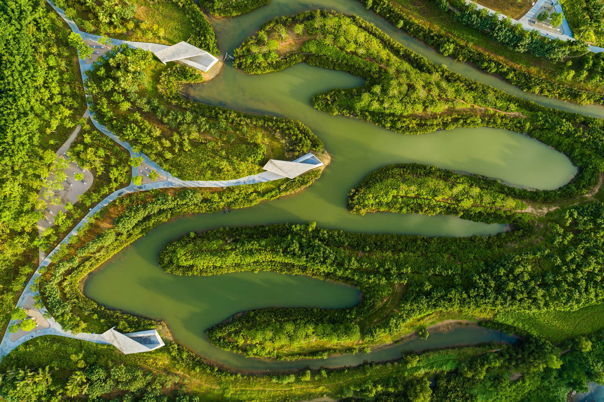 Imagen aérea del edificio y remodelación del espacio público que la rodea. Fotografía: Gonzalo Viramonte.
