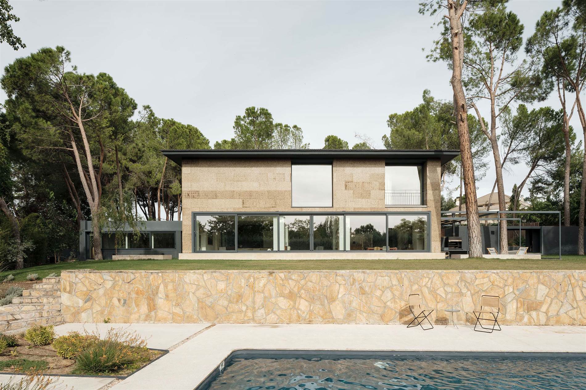 D. C. C.: El corcho ya viene de fábrica protegido con tratamiento antifúngico y es un material que cambia mucho de color, cuando se moja, cuando le pega mucho el sol… Y en el garaje sí lleva un barniz, por insistencia del cliente, aunque nosotros hubiéramos preferido no haberlo puesto para que envejeciera de manera más natural.